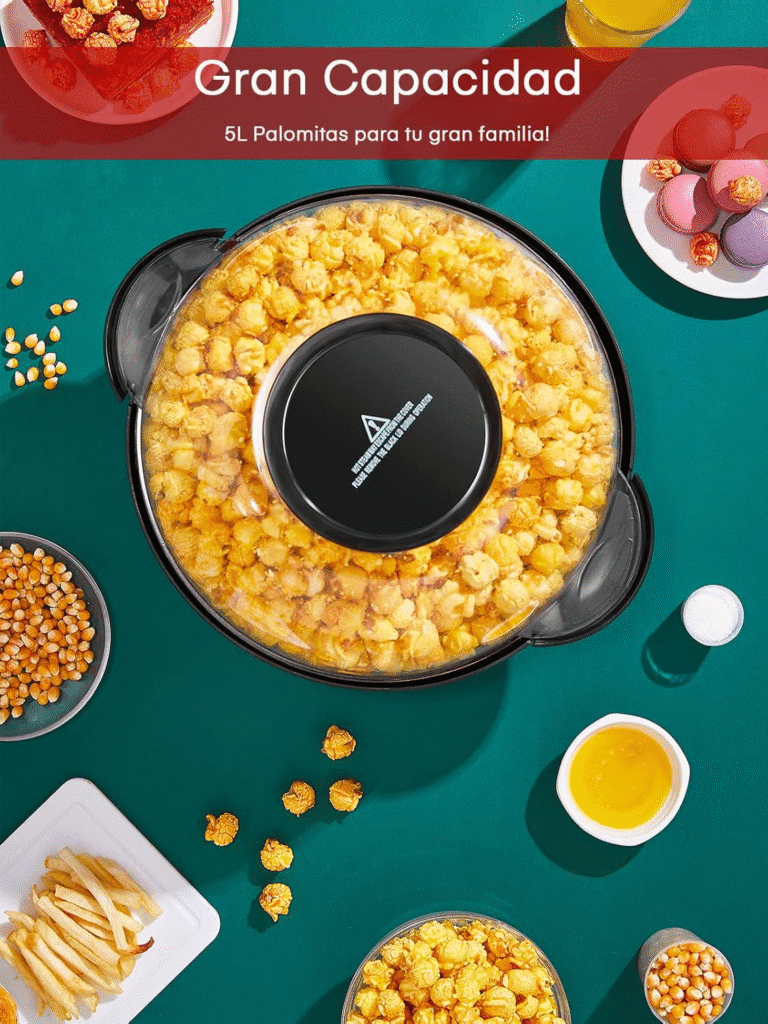 El complemento perfecto para tu cine en casa: palomitas saludables en menos de 3 minutos. Diseño vintage verde césped, luces LED en el interior y limpieza ultrarrápida. Adiós a las bolsas de microondas, hola a la ambientación de estadio.